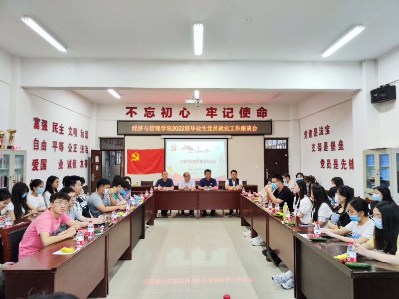 當晚,學院黨委召開畢業生黨員就業工作座談會。校黨委委員、統戰部部長孫體楠,學院黨委書記馬振耀、副書記朱俊偉,學生黨支部書記、輔導員老師及40餘名畢業生黨員代表參加會議。